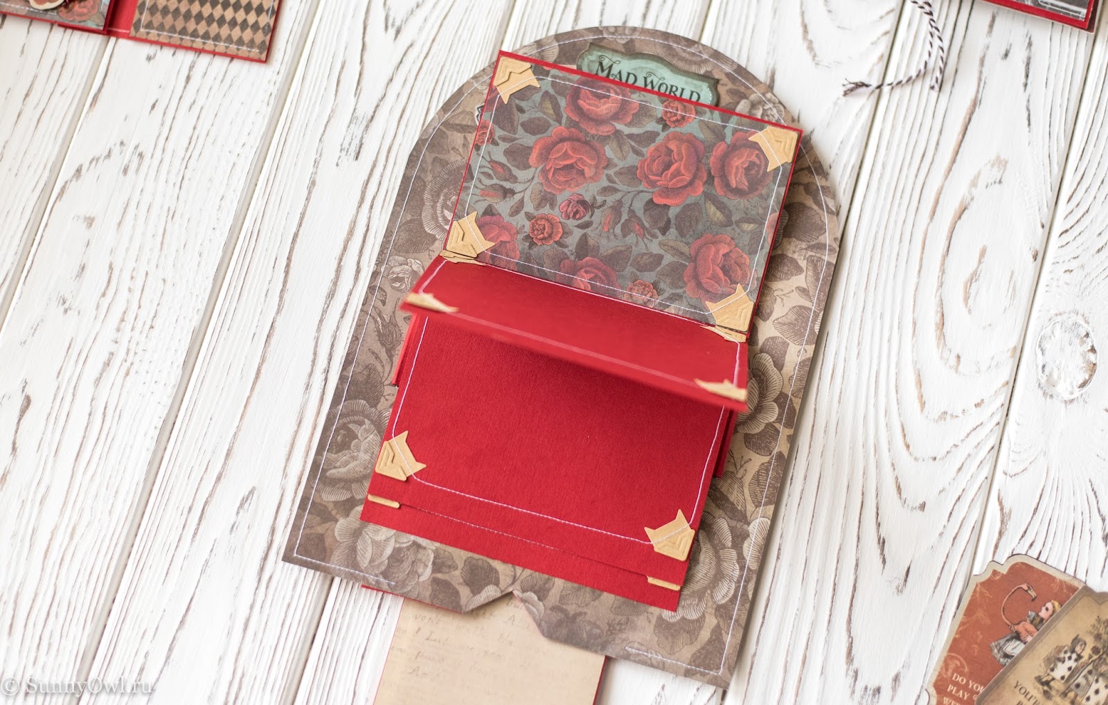 Тянем за веревочку, открываем клапан вверх. Здесь мы можем разместить 12 мини-фотографий.